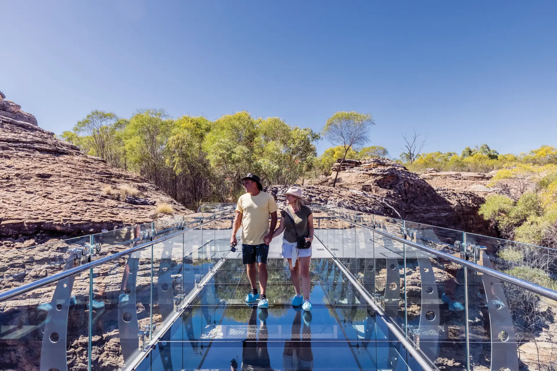 • See the rugged sandstone formations of Cobbold Gorge as you walk across the glass bridge